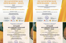 Лилия Анатольевна Амосова и Вадим Александрович Чухрий награждены Дипломами I степени II Международного профессионально-методического конкурса «Педагогическое призвание-2025» и III Международного научно-исследовательского конкурса «Лучший исследовательский проект 2025».