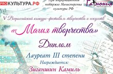 V Всероссийский конкурс-фестиваль творчества и искусств "Магия творчества" принёс нашему ученику успех!
