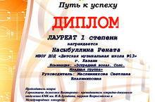 Поздравляем Насыбуллину Ренату с победой на Международном конкурсе "Весенняя соната". Она стала лауреатом I степени. Преподаватель Масленникова Светлана Владимировна.