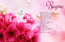 Примите самые искренние поздравления с чудесным весенним праздником – Международным женским днём 8 марта!