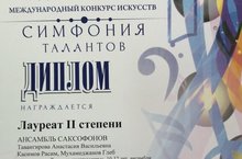 Сегодня в Казани состоялся Международный конкурс искусств "Симфония талантов", в котором приняли участие учащиеся духового отделения класс преподавателя Тавангировой Анастасии Васильевны, концертмейстер Симбирёва Лидия Сергеевна.