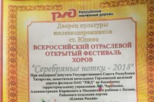 22 апреля в ДК железнодорожников проходил Всероссийский отраслевой открытый фестиваль хоров "Серебряные нотки - 2018". В фестивале приняли участие старший хор "Созвучие" (руководитель Родионова Л.С., концертмейстер Слинкова О.В.), младший хор "Конфетти" (руководитель Симакова И.Ю., концертмейстер Романова Т.Ф.).