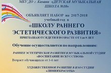 Прием учащихся на 2017-2018 учебный год в "Школу раннего эстетического развития" 25.08.2017