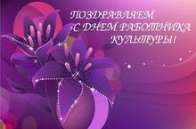 Уважаемые коллеги! Сердечно поздравляем Вас с профессиональным праздником - Днем работника культуры! В культуре нет равнодушных и случайных. В ней остаются талантливые, великодушные и преданные своему делу. Именно вы - люди в безграничной фантазией - делаете наш мир лучше, чище, добрее. От всей души желаем вам творческих успехов, вдохновения, самых смелых идей и проектов. Пусть ваша удивительная энергия, любовь к людям творит чудеса. Доброго здоровья вам, счастья, оптимизма и благополучия!