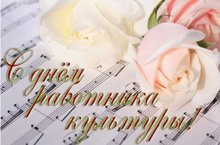Уважаемые коллеги! Примите теплые и сердечные поздравления с профессиональным праздником - Днем работников культуры. Выражаем Вам благодарность за профессионализм, любовь к прекрасному и стремление привить эту любовь другим. Примите пожелания крепкого здоровья, вдохновения, неисчерпаемой энергии, творческого поиска и новых достижений! -