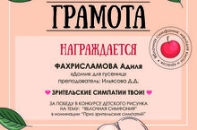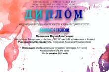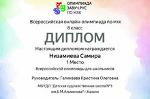 Поздравляем с высокими результатами ученицу "ДХШ №3 им.Б.М.Альменова"г.Казани!