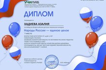Награждается Хадиева Азалия за победу во всероссийском конкурсе детского творчества "Народы России - единое целое" 11.11.2025