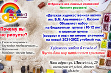 МБУДО г.Казани "Детская художественная школа № 3 им.Б.М.Альменова"проводит набор детей с 10 до 12 лет на бюджетное отделение на новый 2021-2022 учебный год.