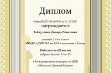 Поздравляем ученика нашей "ДХШ №3 им.Б.М.Альменова" г.Казани с высоким результатом в номинации "Графика"!