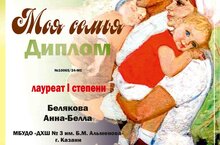 Поздравляем ученицу "ДХШ №3 им.Б.М.Альменова" с высочайшими достижениями в Международном творческогм конкурсе "Моя семья".