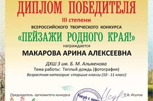 Поздравляем дипломантов всероссийского творческого конкурса "Пейзажи родного края". Учащиеся ДХШ №3 им.Б.М.Альменова г.Казани показали отличный результат.