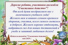 От всей души поздравляем вас с окончанием учебного года!Желаем вам и вашим семьям крепкого здоровья, счастья, всего самого светлого и доброго. Желаем хорошо провести летние каникулы! -