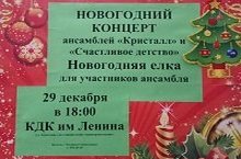 29 декабря 2018 года в 18.00 часов в КДК им. Ленина состоится Новогодний концерт хореографических ансамблей "Кристалл" и "Счастливое детство". После концерта маленьких участников ждет новогодний карнавал с Дедом Морозом и Снегурочкой.
