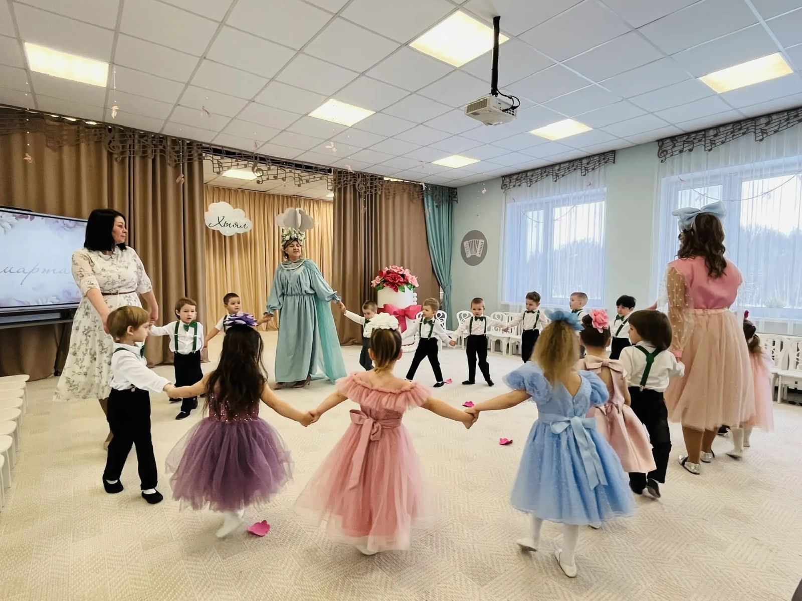 8 Марта в детском саду – самый трогательный, нежный и удивительный праздник. Он посвящён самым милым и нежным, любимым и родным мамам и бабушкам. В этот день все улыбки, песни, стихи, танцы посвящаются прекрасным женщинам! В преддверии Международного женского дня на этой неделе во всех возрастных группах нашего детского сада проводятся праздничные утренники. В каждой группе свой праздник для мам и бабушек.Балалар бакчасында 8 мартка багышланган бәйрәм чаралары башланып китте.