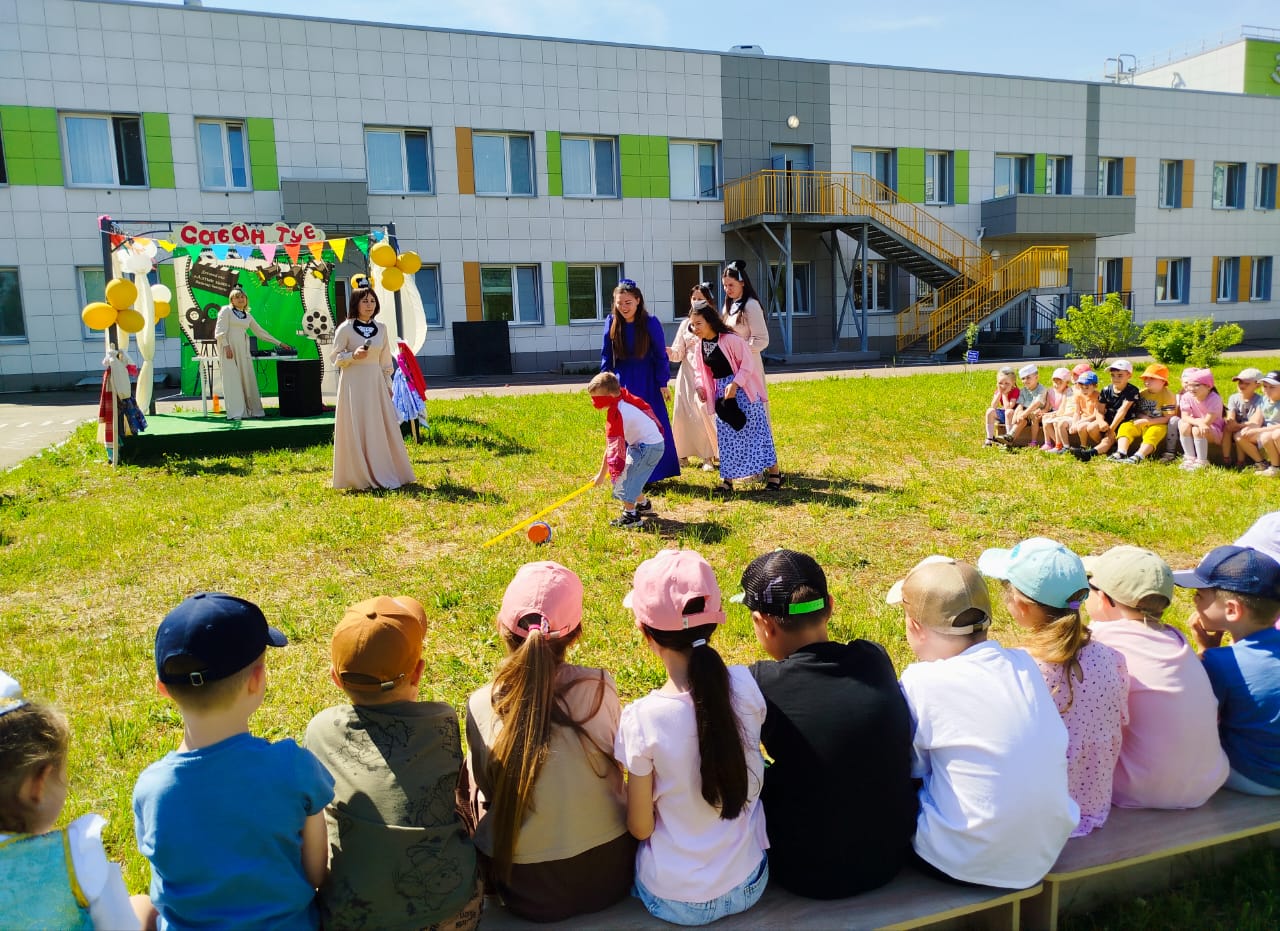 Сегодня в «Алтын хыял» яркий и традиционный праздник Сабантуй, который прошел в атмосфере веселья и национального колорита: дети участвовали в татарских народных играх, пели, танцевали и заряжались хорошим настроением. Подготовка к празднику началась за несколько дней до назначенного праздника. Дети собирали платки и красиво вышитые полотенца, приглашая всех с добрыми пожеланиями на торжественный Сабантуй.