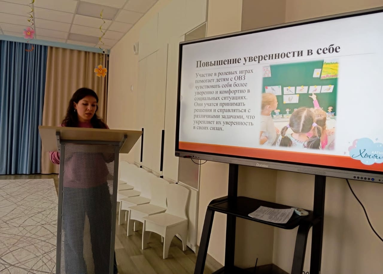 Бүген укытучы-дефектолог Чулкова Лариса Николай кызы район методик берләшмәсе кысаларында эш тәҗрибәсе белән уртаклашты.