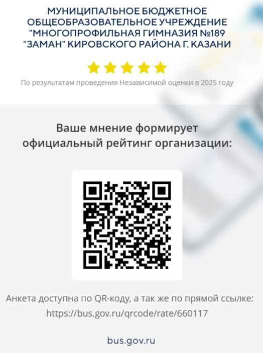 Муниципальное бюджетное общеобразовательное учреждение «Многопрофильная гимназия №189 “Заман”» Кировского района г. Казани