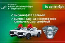 14 сентября, в день проведения выборов Раиса Татарстана и муниципальных депутатов пройдет фотоконкурс #ТатарстанАлга #ВсейСемьейНаВыборы. По его итогам можно выиграть автомобиль или смартфон