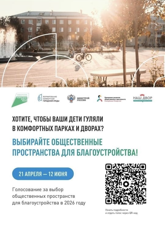 До 12 июня включительно выбери на Госуслугах РТ общественное пространство Казани, которое нужно обновить в новом году, выложи скрин с голосования и участвуй в розыгрыше!