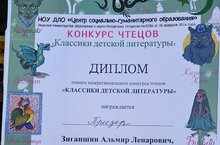 Так же Альмир стал призером очного межрегионального конкурса чтецов «Классики детской литературы»