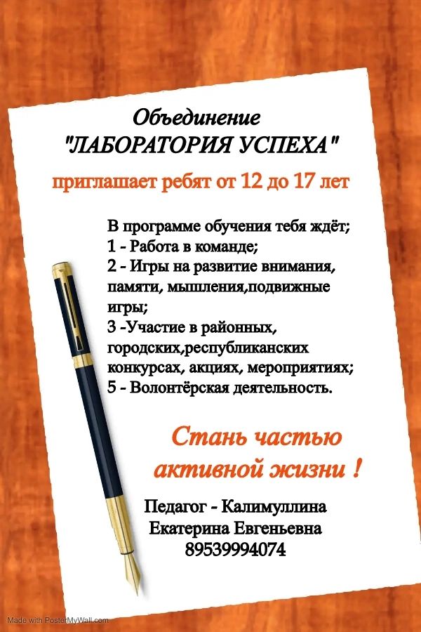 Объединение "Лабратория успеха" - педагог Калимуллина Екатерина Евгеньевна