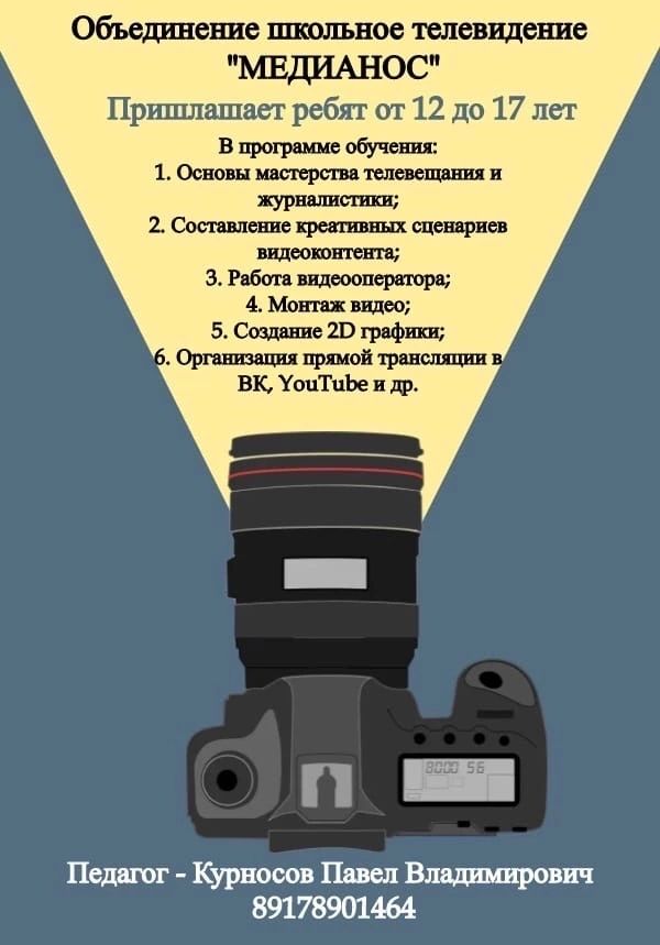 Объединение школьное телевидение "МЕДИАНОС" - педагог Курносов Павел Владимирович