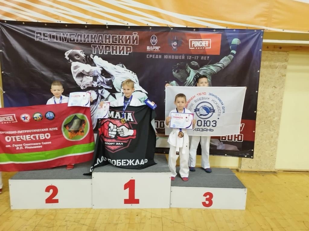 Опубликовано: 07.10.20237 октября в спортивном комплексе «Олимпиец» проходил республиканский турнир по рукопашному бою, ребята объединения «Самбо» заняли призовые места!