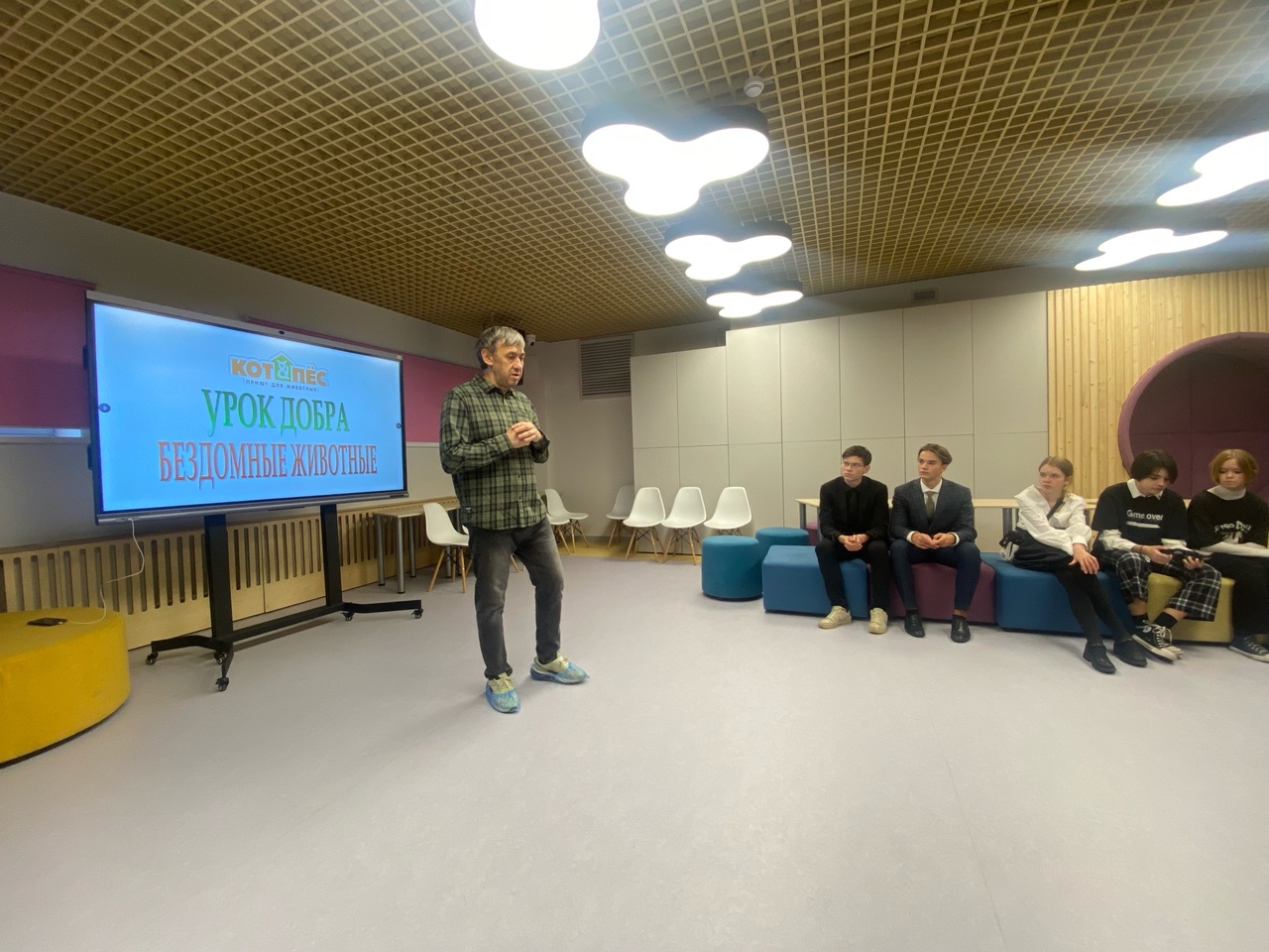 В рамках урока добра Альберт Наилевич рассказал о том, как важно помогать бездомным животным.