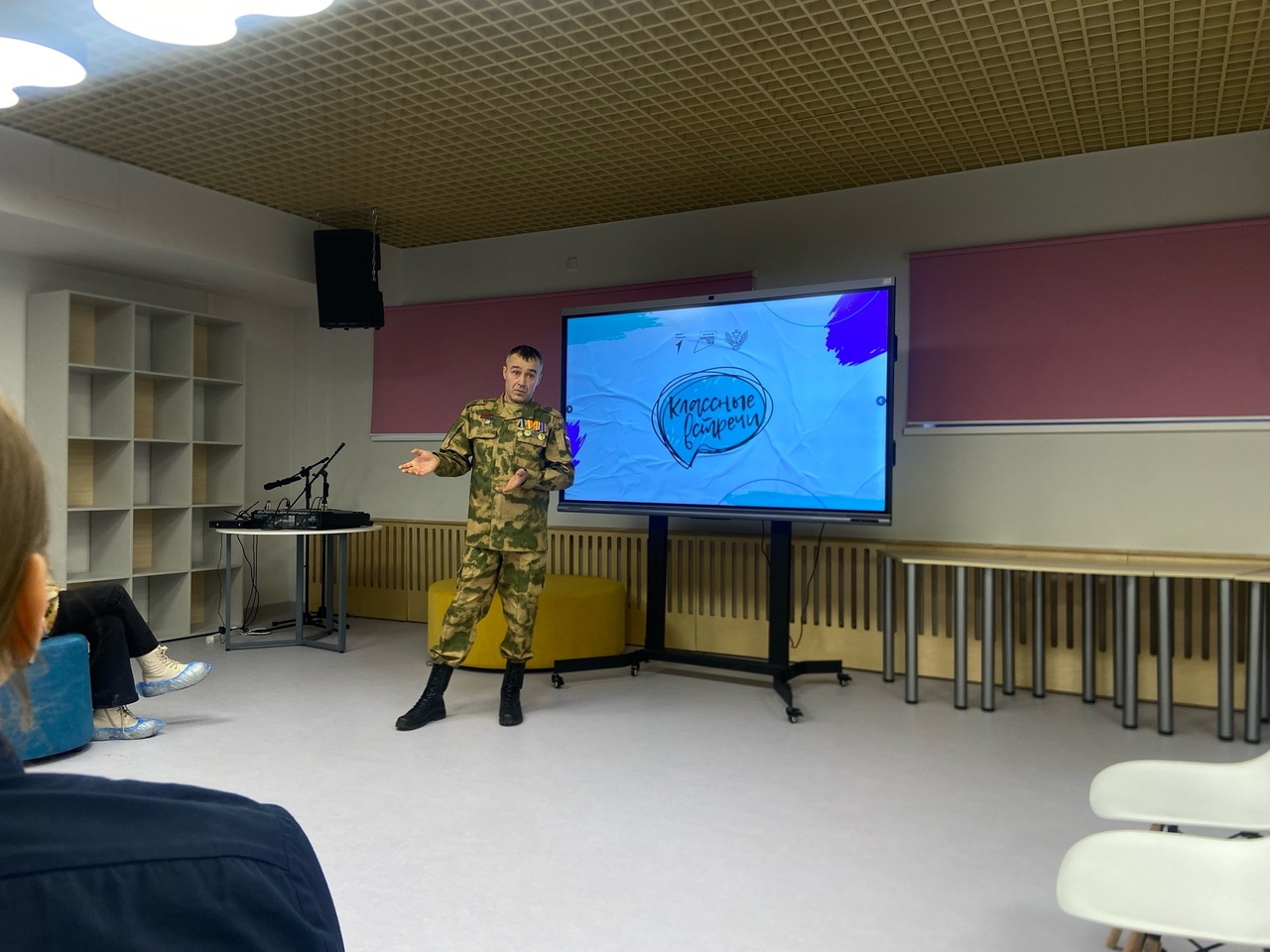 Опубликовано: 25.10.2023В рамках Всероссийского проекта Классные встречи в нашем центре состоялась встреча с бойцом добровольческого батальона АЛГА - Садреевым Наилем Абдулловичем.