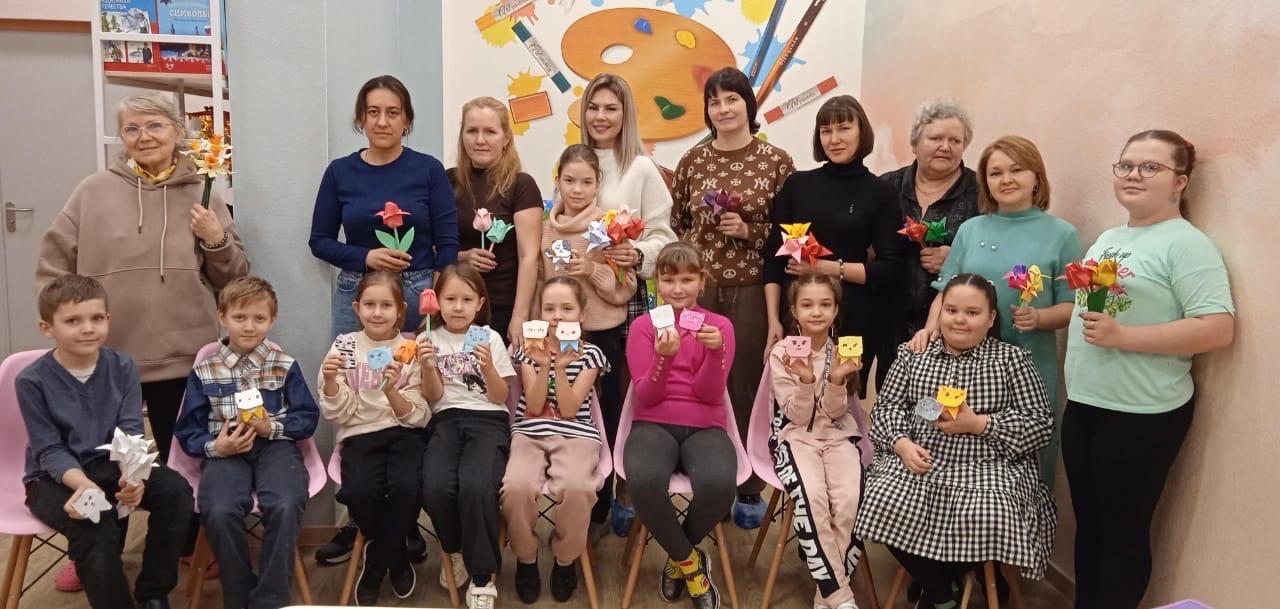 Опубликовано: 26.11.2023В студии дизайна "Радуга" под руководством Минеевой Светланы Юрьевны прошел мастер-класс по оригами поделкам с участием мам и бабушек. Дети с любовью сложили из бумаги букеты ярких цветов в подарок и научили родителей делать интересные бумажные игрушки.