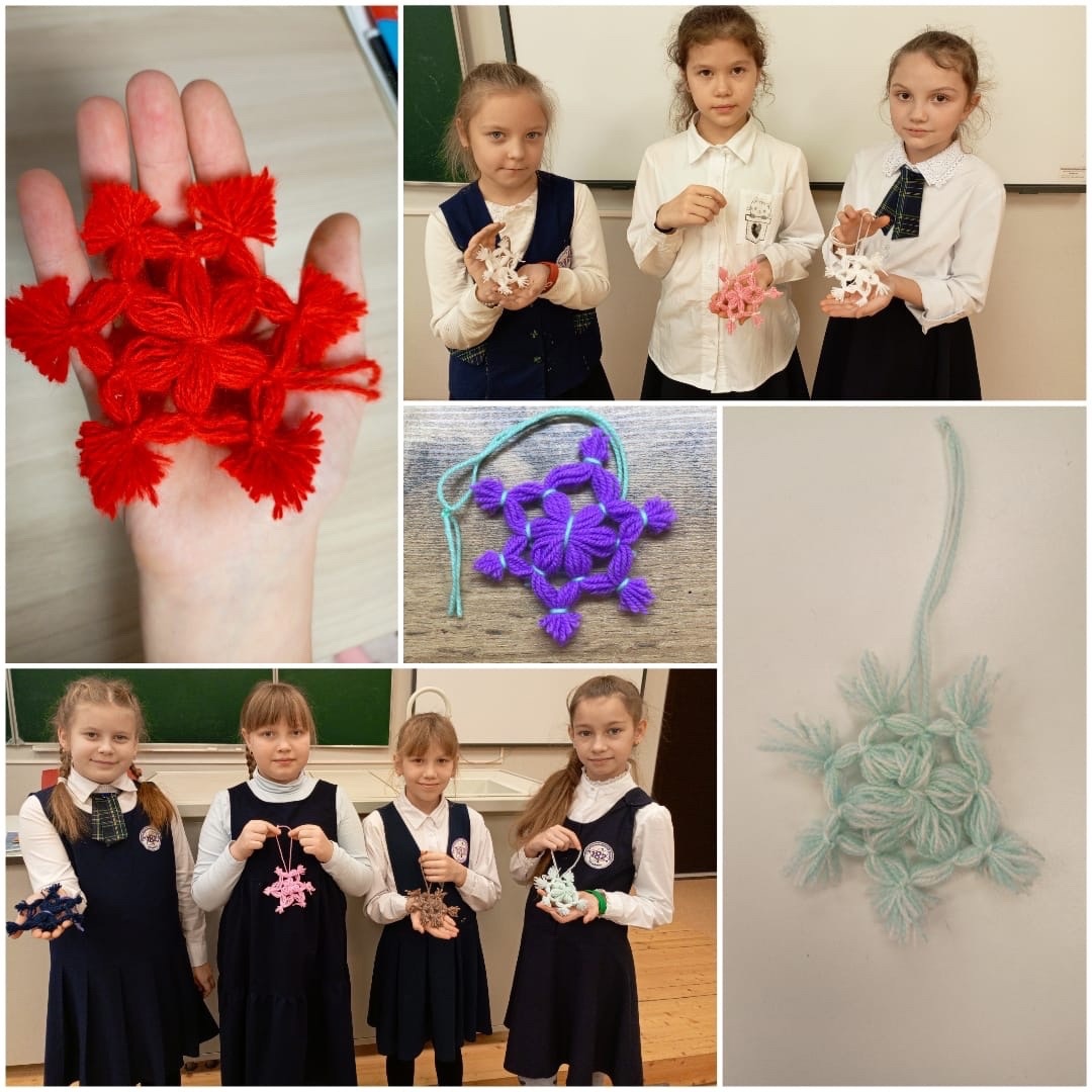 Ребята из объединения «Волшебные пальчики» в рамках акции «Российский детский Дед Мороз» сделали новогодние ёлочные игрушки - Снежинки.