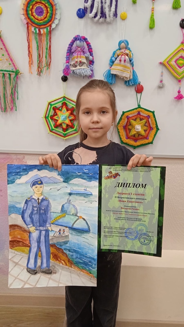 Также лауреатство 1 степени во II всероссийском конкурсе "Наши Zащитники" завоевали обучающиеся объединения ИЗО "Королева Кисточка": Хисамова Ясмина, Носырева Рамина, Демидова Ралина и коллективная работа студии дизайна "Радуга".