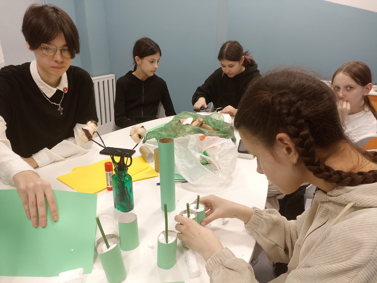 Второе задание конкурса называется "Мы за раздельный сбор". В рамках условия конкурсного задания ребята выбрали изготовление свечей из вторсырья. Ребята отметили, что изготовление композиции не отняло много времени, но предоставило огромный простор для творчества!