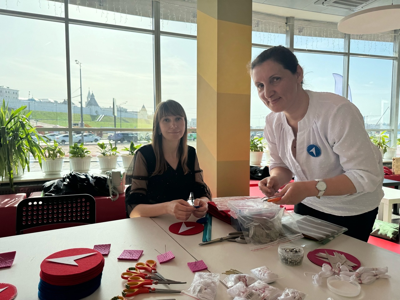 В рамках Республиканского форума «Алга! Поехали!» были организованы мастер-классы для активистов Движения Первых. Педагоги нашего центра Минеева Светлана Юрьевна и Ермолаева Эльвира Хайрилхаковна провели мастер-класс по изготовлению подставок для кружек из фетра с логотипом Движения Первых и брошь из фетра.