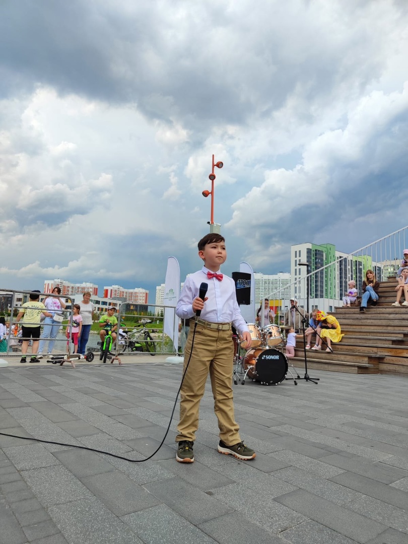 Наши обучающиеся проявили себя настоящими артистами, выступая при постоянно перемещающихся в парке зрителях, посторонних звуках, сбоях аппаратуры и любых погодных условиях!
