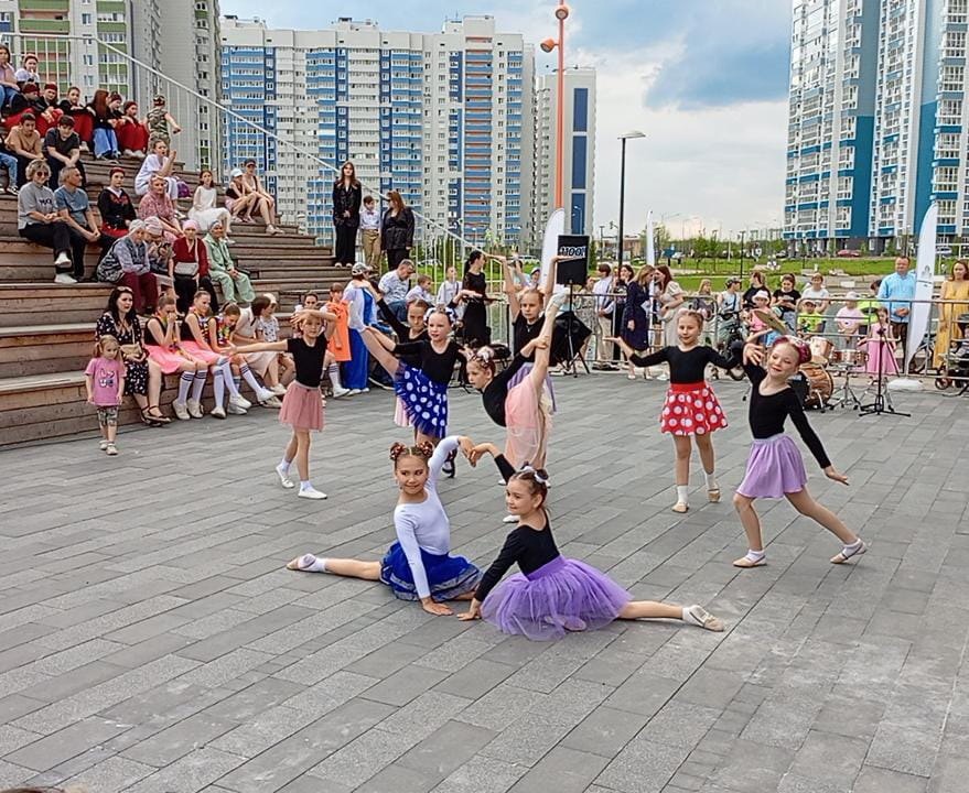 Отдыхающих в парке нового микрорайона всегда много, они с интересом собрались в амфитеатре у озера на праздничный концерт. Номера наших артистов принимались публикой с поддержкой и воодушевлением, но набегающие тучки немного насторожили зрителей. На мгновение показалось что зажигательные тропические танцы коллективов художественной гимнастики, учащихся школы 188 "Бионика" и команды Life in motion прогнали угрозу дождя. Но даже дуэт солистки объединения "Эстрадный вокал" Елизаветы Журавлевой и педагога Мартиныной Регины Ильдаровны с песней "Луч солнца золотого" не смог прояснить небо. И завершался концерт картиной из фильма - массовым танцем команды Life in motion под дождём!