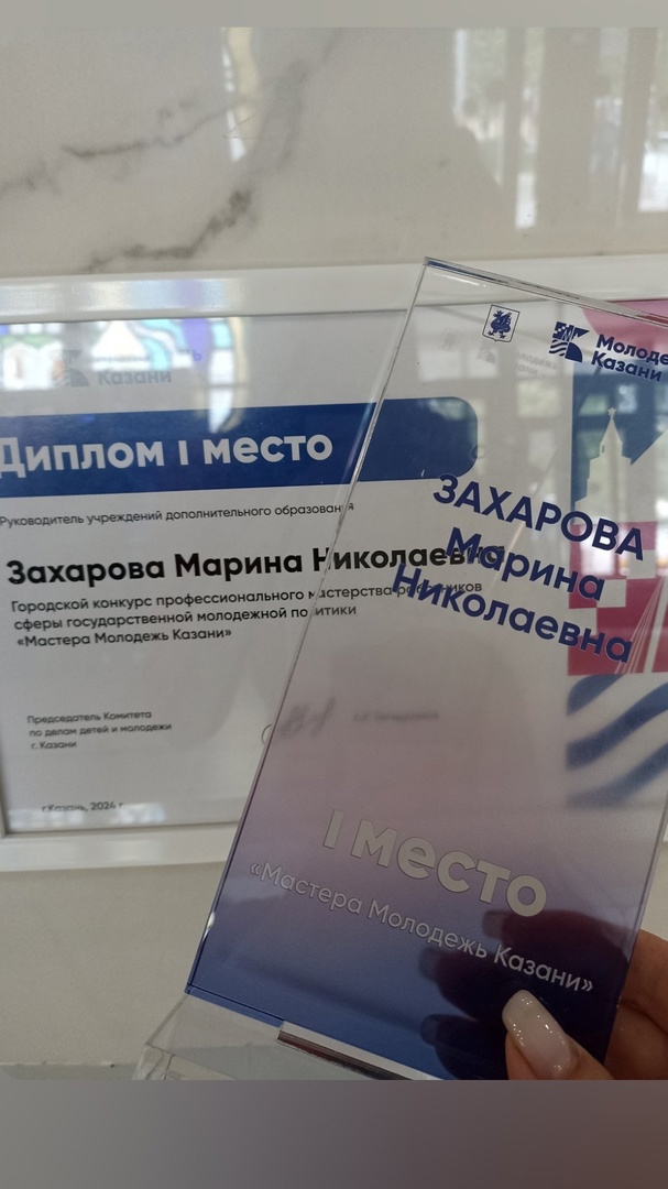 Опубликовано: 27.06.2024Поздравляем директора центра Захарову Марину Николаевну с победой в городском конкурсе профессионального мастерства работников сферы молодежной политики "Мастера Молодежь Казани"