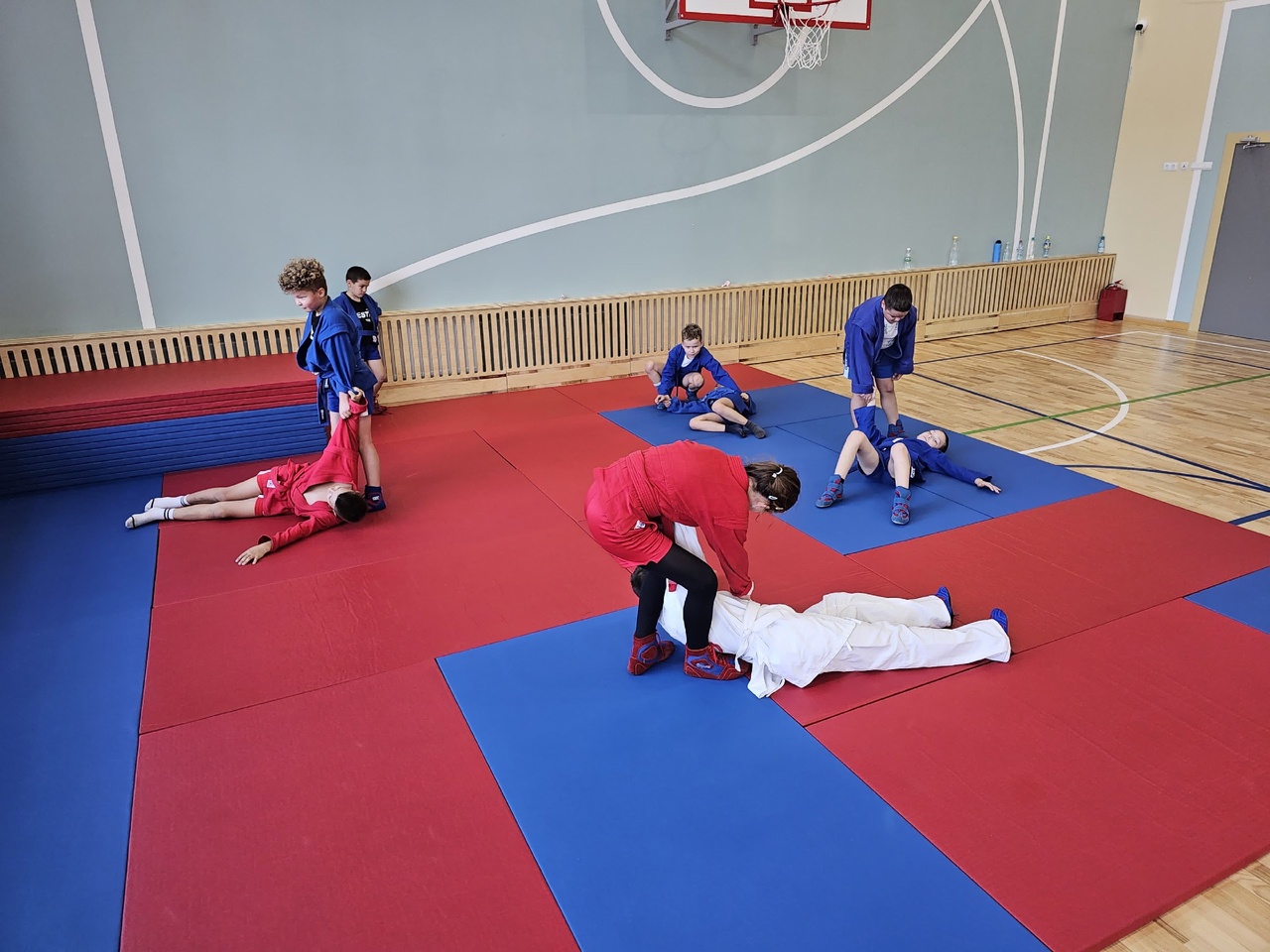 Педагог всегда следит за правильностью выполнения приемов и помогает обучающимся. Юные самбисты часто выступают на соревнованиях и занимают призовые места!
