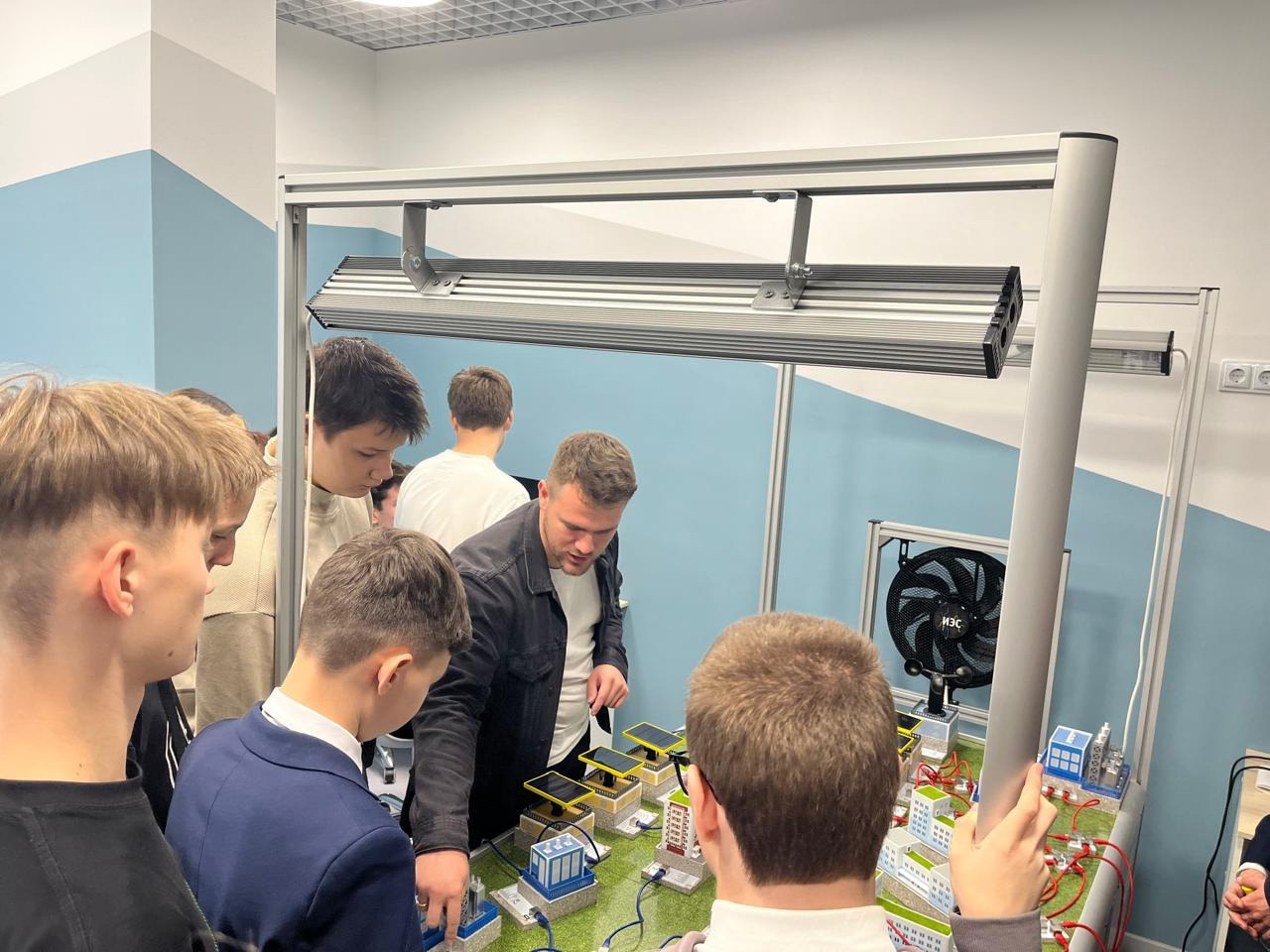 Ребята познакомились с работой лаборатории "Интеллектуальные энергетические системы", которая предназначена для обучения и проведения инженерных соревнований на разном уровне сложности в области умных энергосистем, возобновляемой энергетики, надёжностью и экономикой построения электрических сетей. Включает учащихся в моделирование сложных современных инфраструктур на примере энергетики.