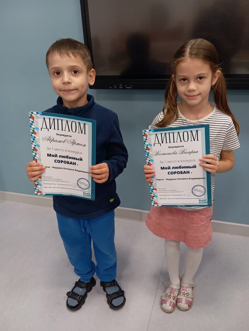 Опубликовано: 08.11.2024Ребята из объединения "Ментальная арифметика" приняли активное участие во Всероссийском конкурсе "Мой любимый соробан" и заняли множество призовых мест. Поздравляем!