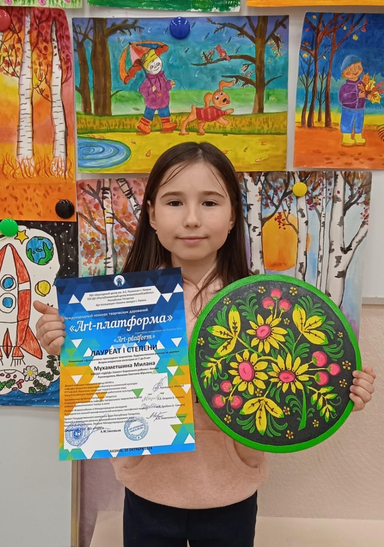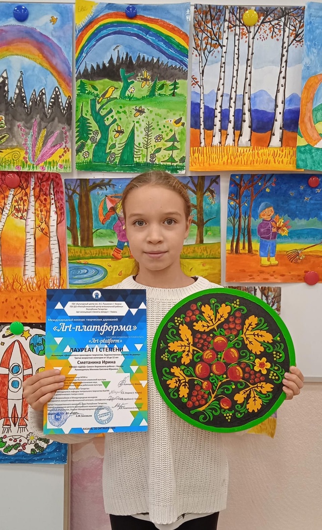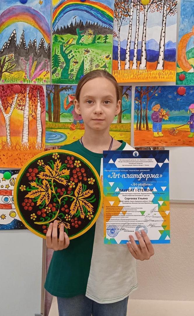 ►Все ребята получили дипломы лауреата I степени в номинации «Декоративно-прикладное творчество», где продемонстрировали свои навыки росписи по дереву. Работы получились яркие, в традиционном стиле. Поблагодарим Минееву Светлану Юрьевну за большой вклад в развитие художественно-эстетического вкуса среди подрастающего поколения.
