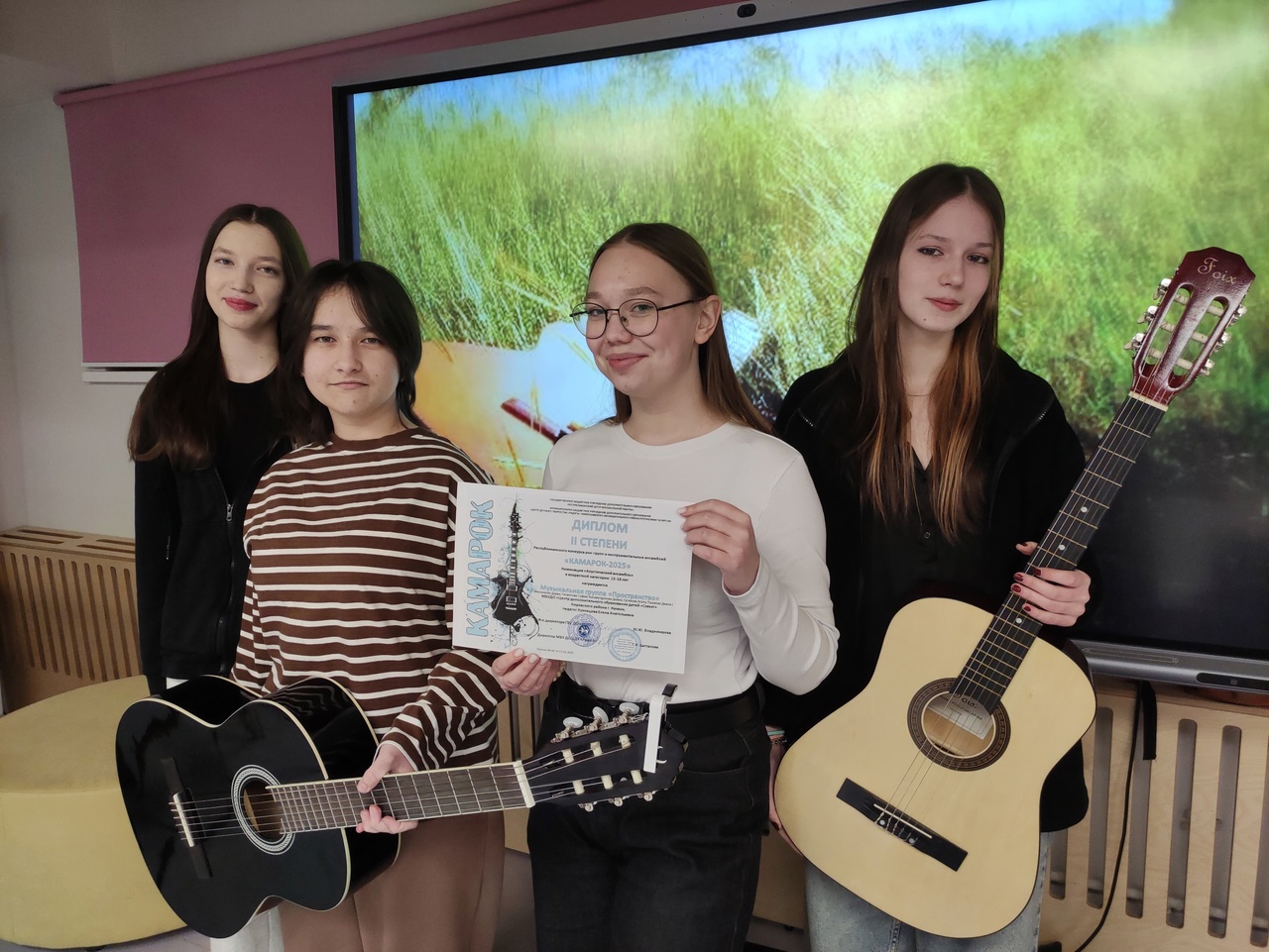 Опубликовано: 06.03.2025Поздравляем гитаристов объединения "Атмосфера" с победами в республиканском конкурсе рок-групп и инструментальных ансамблей Камарок-2025