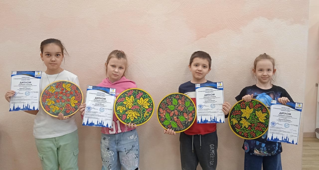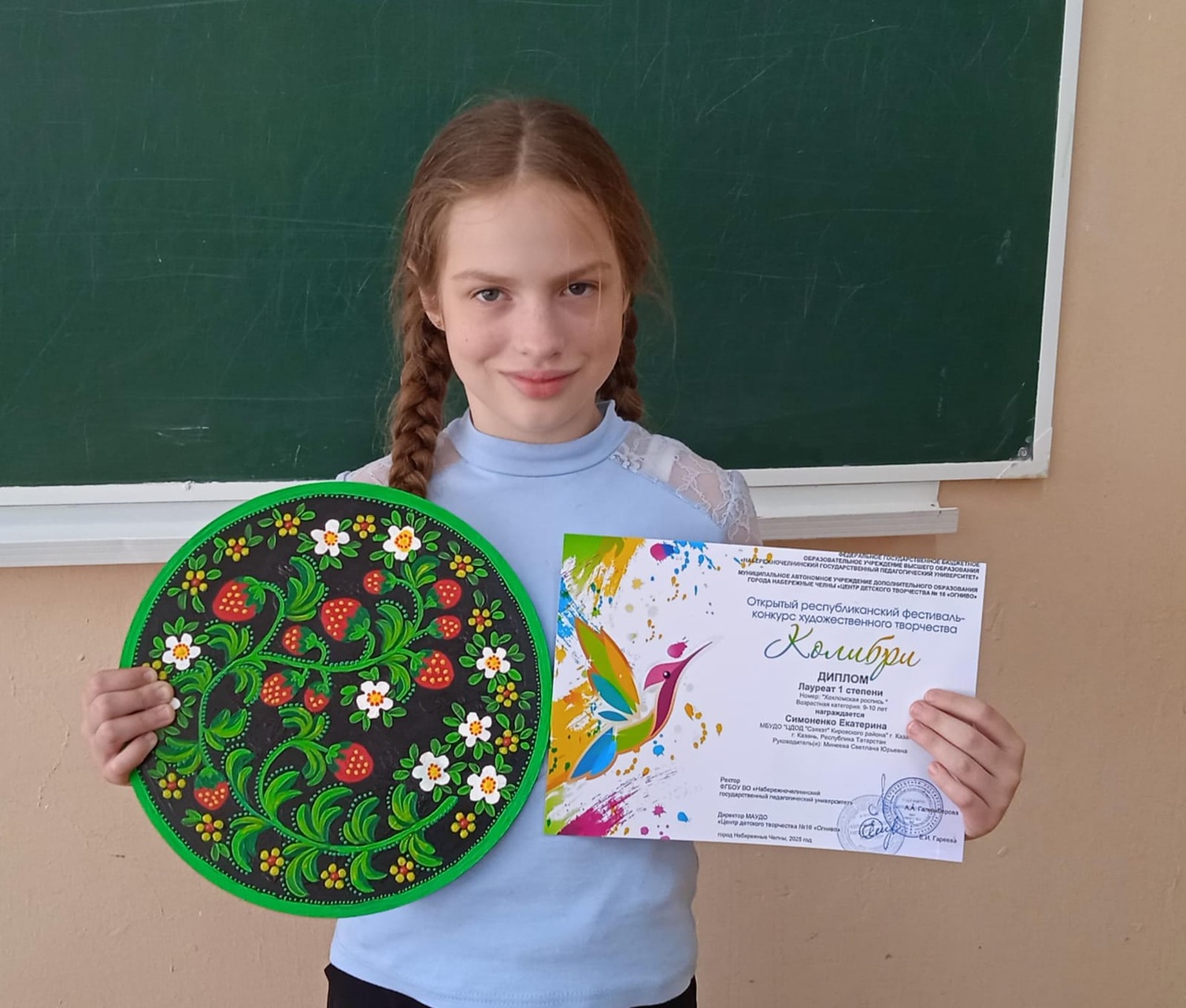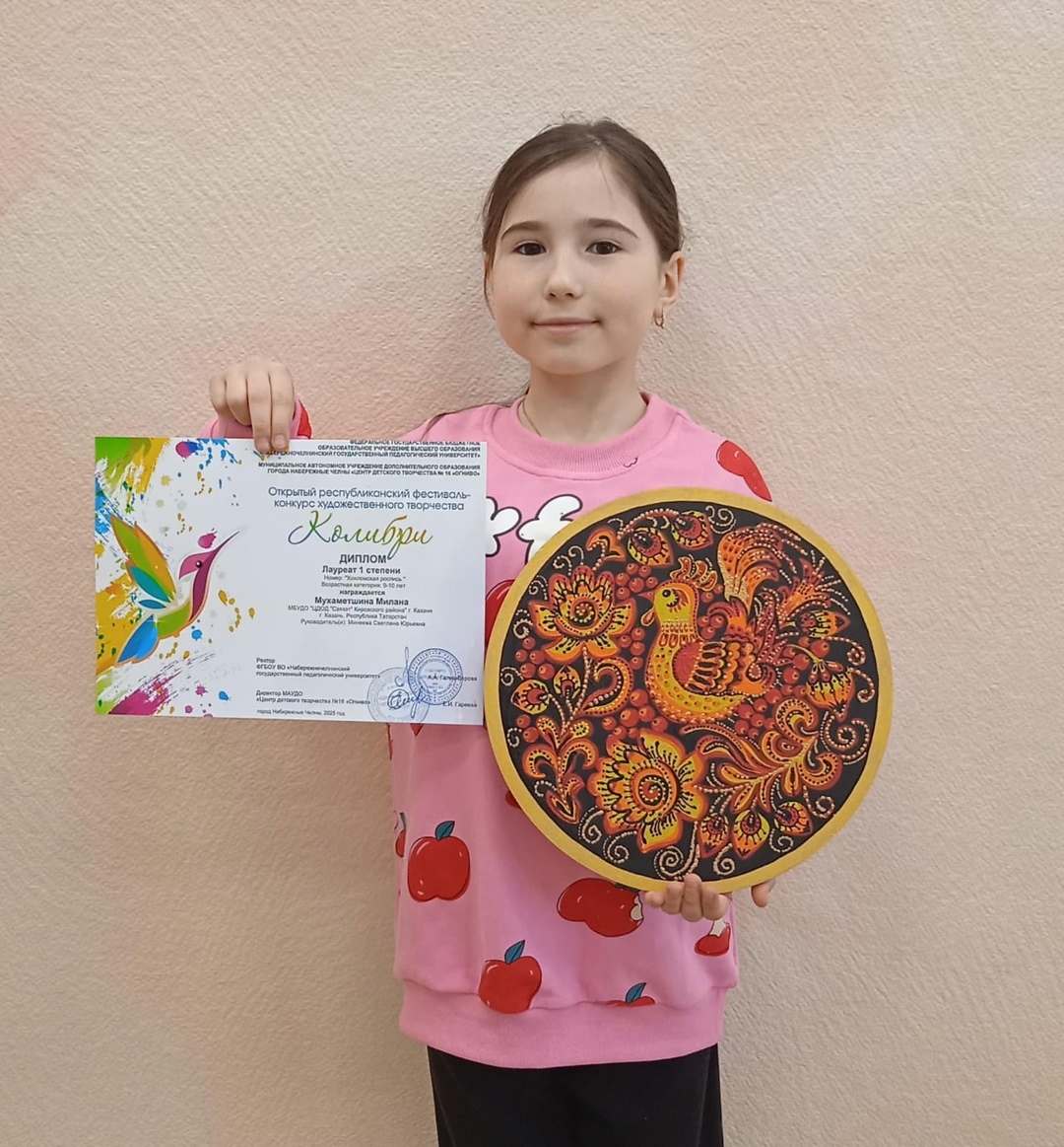 В Международном конкурсе современного искусства «KAZAN-STARS» и Открытом республиканском фестивале художественного творчества «Колибри» приняли участие ребята из объединений «Радуга» и «Королева-Кисточка» под руководством Минеевой С.Ю. Их работы в технике «хохломская роспись» получили: