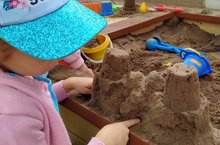 Формируем умение детей создавать образы предметов на песке, развивать творческое воображение, закреплять сенсорные эталоны. Развиваем конструкторские умения, воображение, фантазию. Воспитываем умение работать сообща. Активизируем отдых детей, создаем условия для радости и удовольствия, формируем потребность в ежедневной двигательной деятельности.