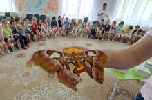 На днях наши дети увидели чудо природы. Программа была очень разнообразная. Детям рассказали о характерных особенностях каждой бабочки. Продемонстрировали полет бабочек. И разрешили деткам подержать дольку апельсина, на которой уютно устроилась очаровательная бабочка-красавица.