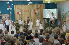 Ребята читали стихи и пели песни о войне, участвовали в сценке и соревновались в спортивных эстафетах.