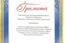 Первичная профсоюзная организация МБДОУ "Детский сад № 80 комбинированного вида с татарским языком воспитания и обучения" Кировского района г.Казани заняла 1 место в районном видеоконкурсе "Наша профсоюзная команда!". Мы - Молодцы!