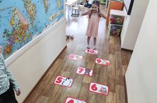 Наш детский сад не стоит на месте. Мы постоянно продумываем и обогащаем предметно-пространственную среду. Воспитатель группы № 6 Александрова Татьяна Владимировна приготовила для детей интресную игру "Классики по цифрам". Она разместила цветные наклейки на пол в своей группе. Дети выпускной группы с удовольствием прыгают по цифрам, а так же закрепляют прямой и обратный счет.
