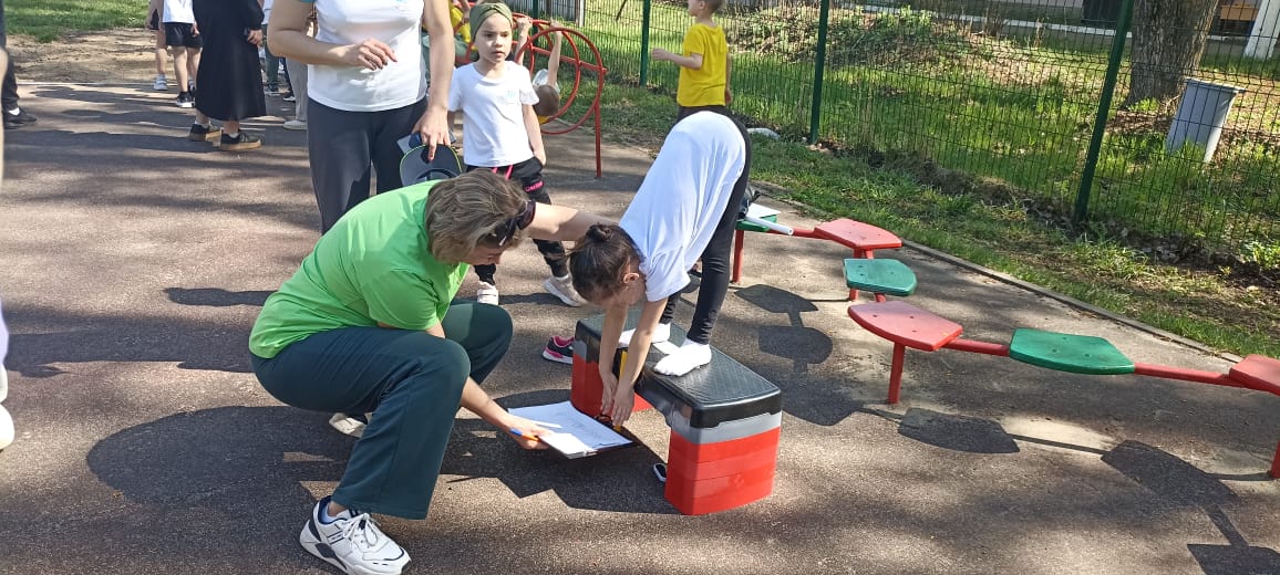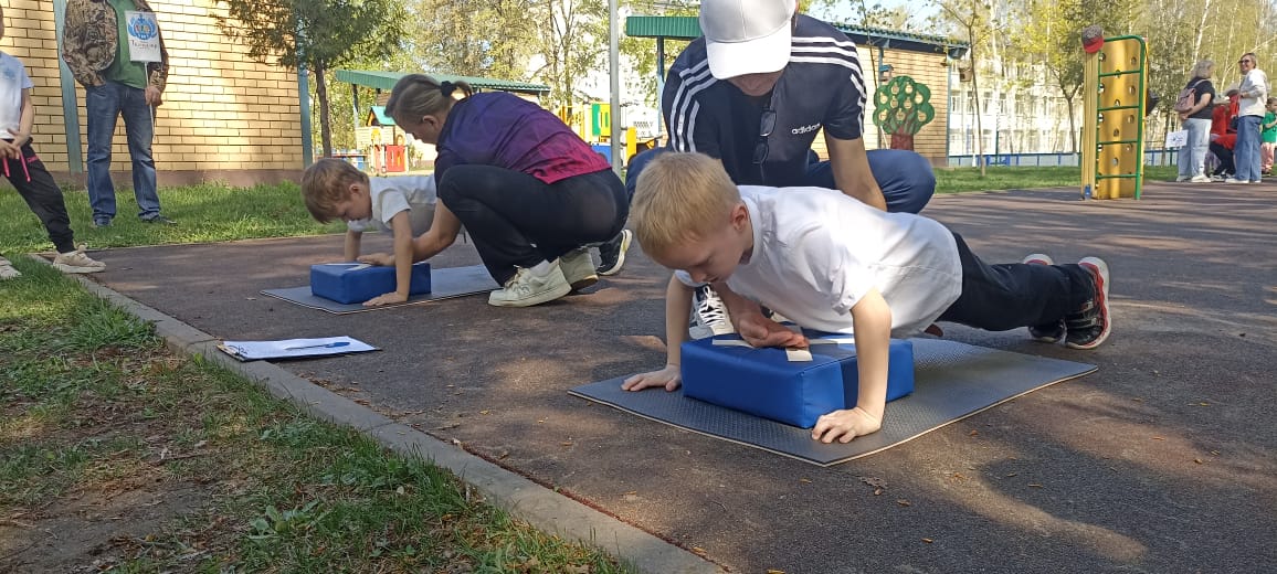 Команда спортивных мальчишек и девчонок нашего детского сада "Тамчылар", из 4 человек (2 мальчика и 2 девочки), боролись за победу. Каждой команде нужно было пройти ряд испытаний: челночный бег (30м), отжимание из положения упор лëжа (мальчики), наклон из положения (стоя) на скамейке (девочки), прыжок в длину с места, метание набивного мешочка вдаль.