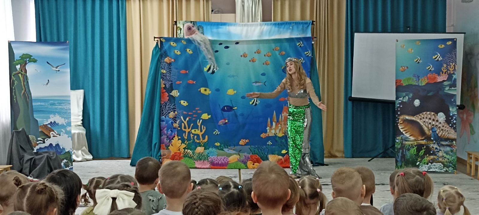 У нас в гостях театр " Акварелька" со спектаклем "Тайна морской жемчужины".